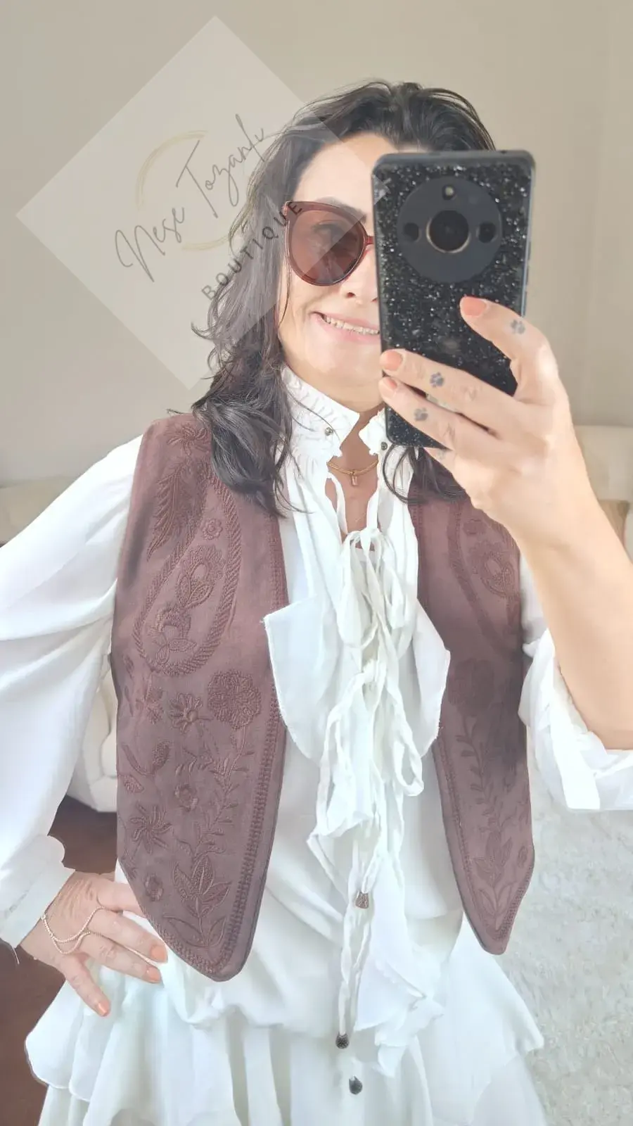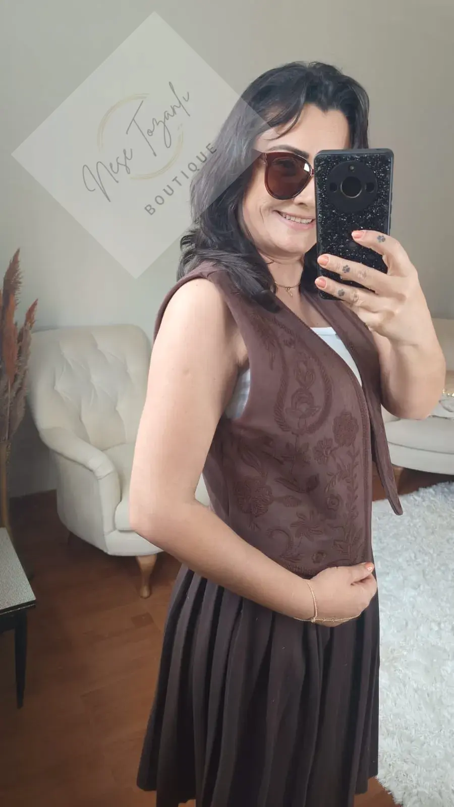 Neşe Tozanlı Boutique'in "stil tutkusu" felsefesini yansıtan bu özel tasarım yelek, gardırobunuzdaki o "eşsiz" parça olmaya aday. Lüks ve yumuşacık süet dokusu, kahverenginin en asil tonuyla buluşuyor.