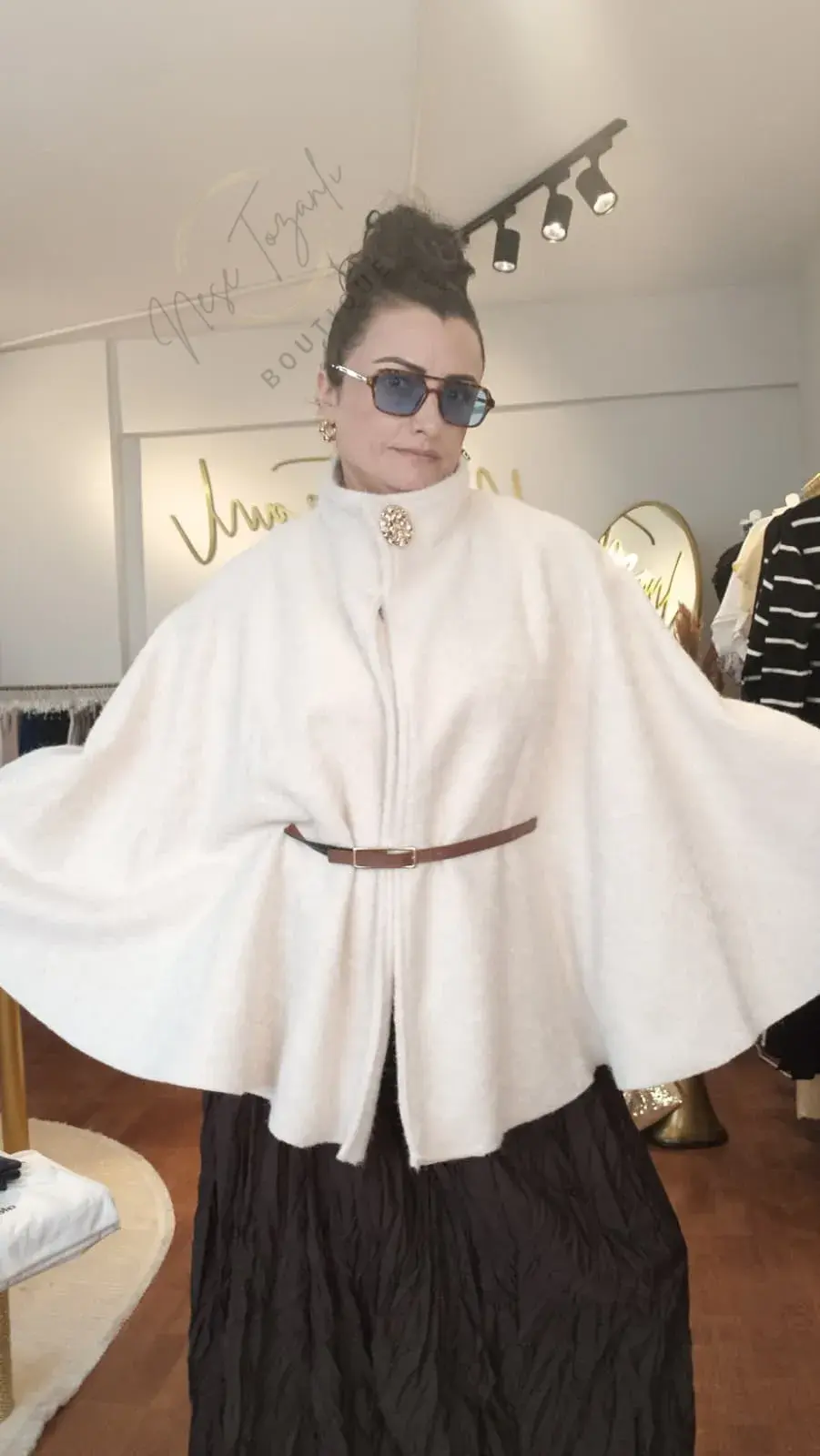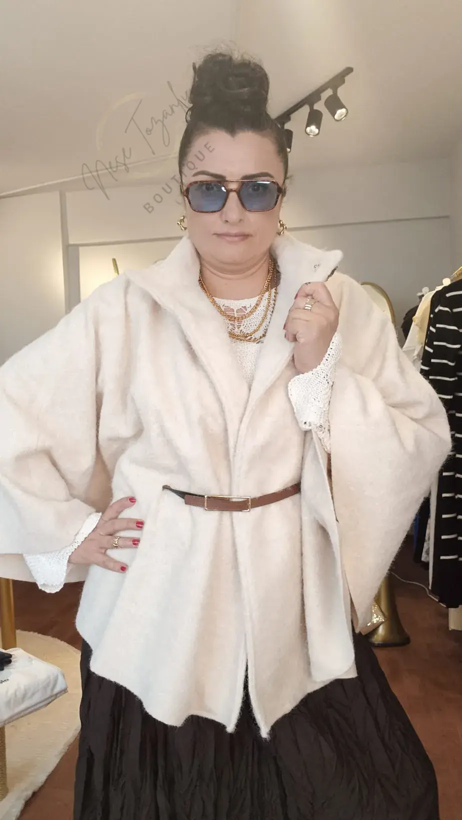 Neşe Tozanlı Boutique, soğuk havalarda bile stilinizden ödün vermemeniz için tasarlandı. Sıradan kabanlardan sıkılanlar için hazırlanan bu Krem Panço Kaban, üzerinize aldığınız anda havanızı değiştiriyor.