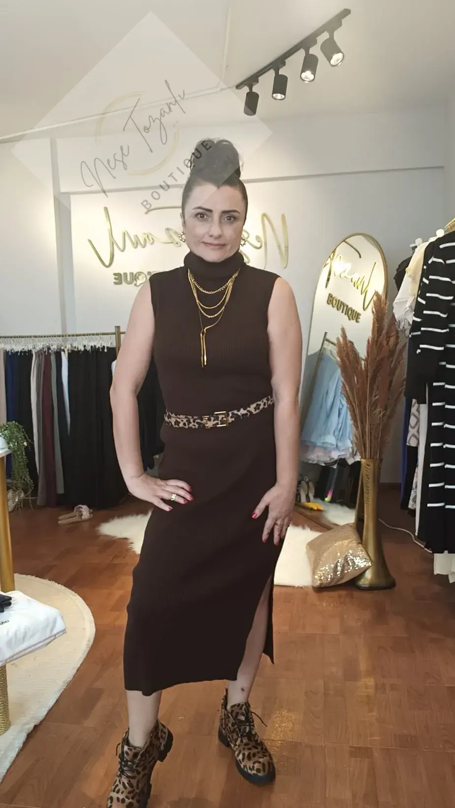Soğuk günlerde stilinizden ödün vermeden konforu yakalayın. Neşe Tozanlı Boutique koleksiyonunun bu zamansız parçası, toprağın en asil tonu olan kahverengiyi, lüks bir triko dokusuyla sunuyor.