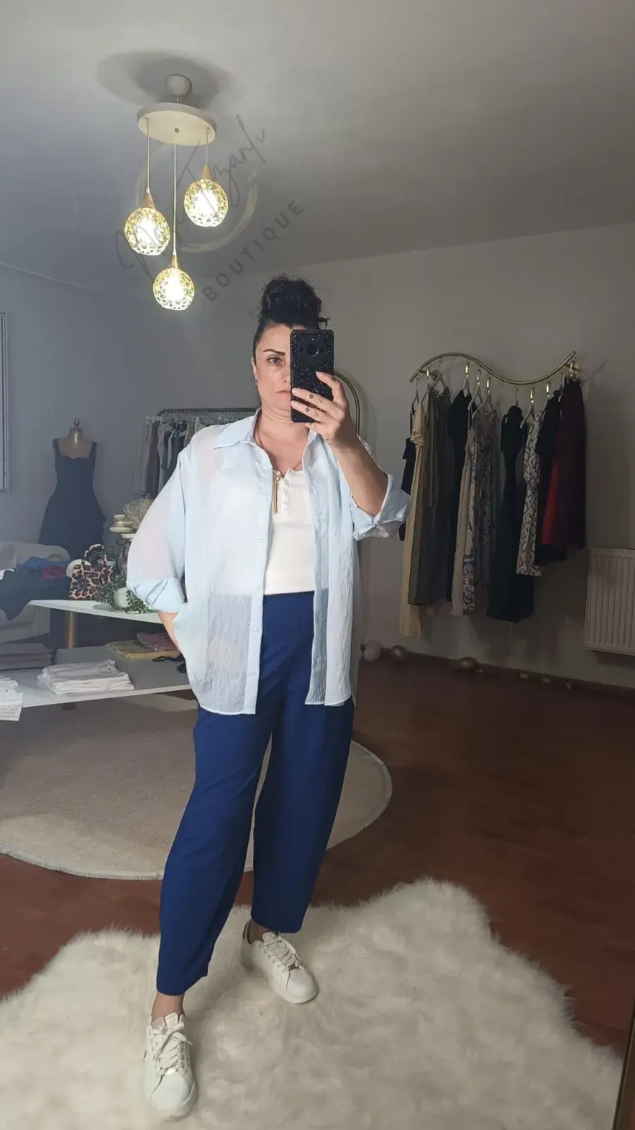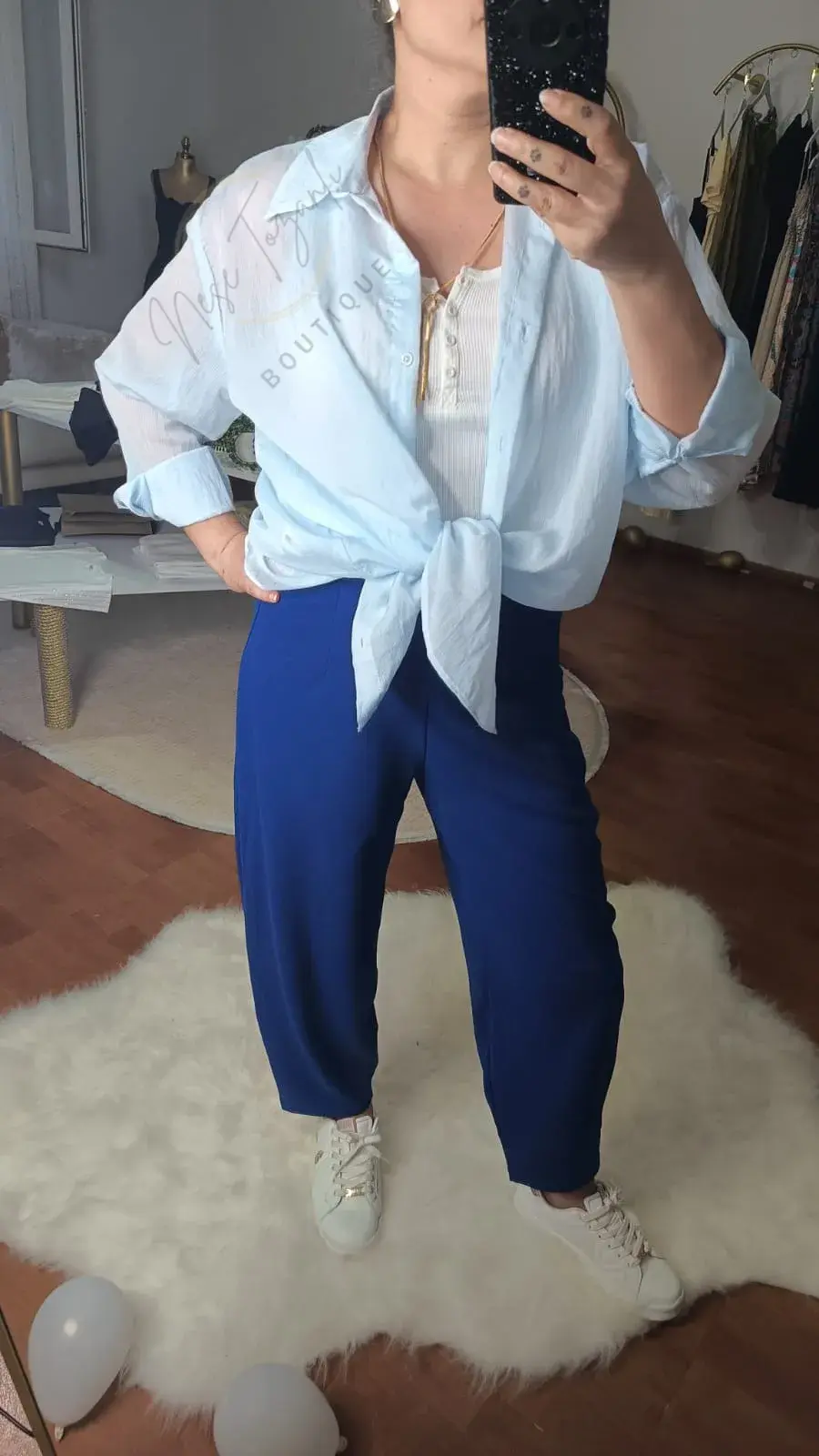 Neşe Tozanlı Boutique ile yazın en tatlı tonunu üzerinizde taşıyın. Bu Süt Mavi Transparan Gömlek, sıcak günlerde içinizi ferahlatacak bir esinti gibi tasarlandı.