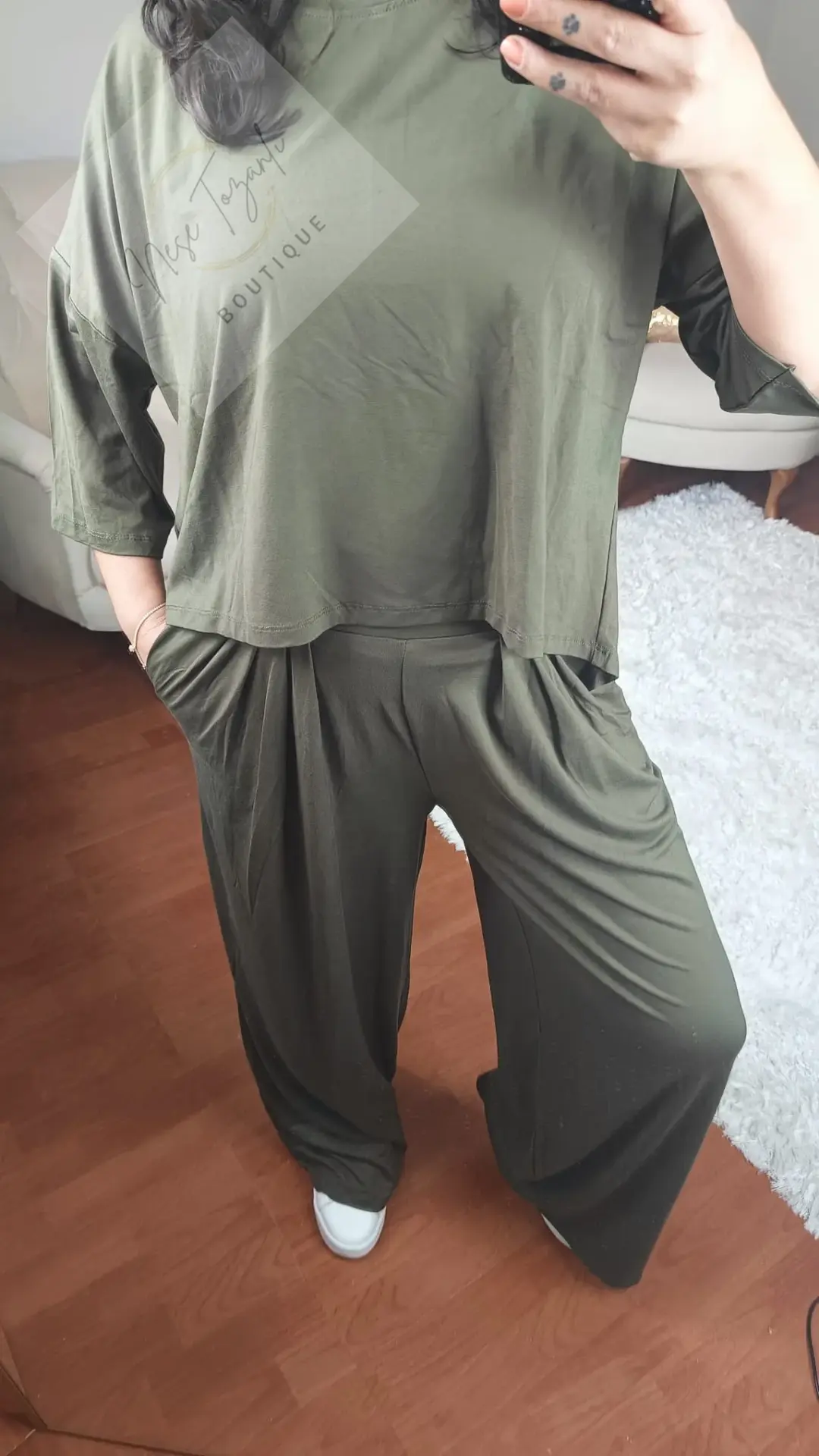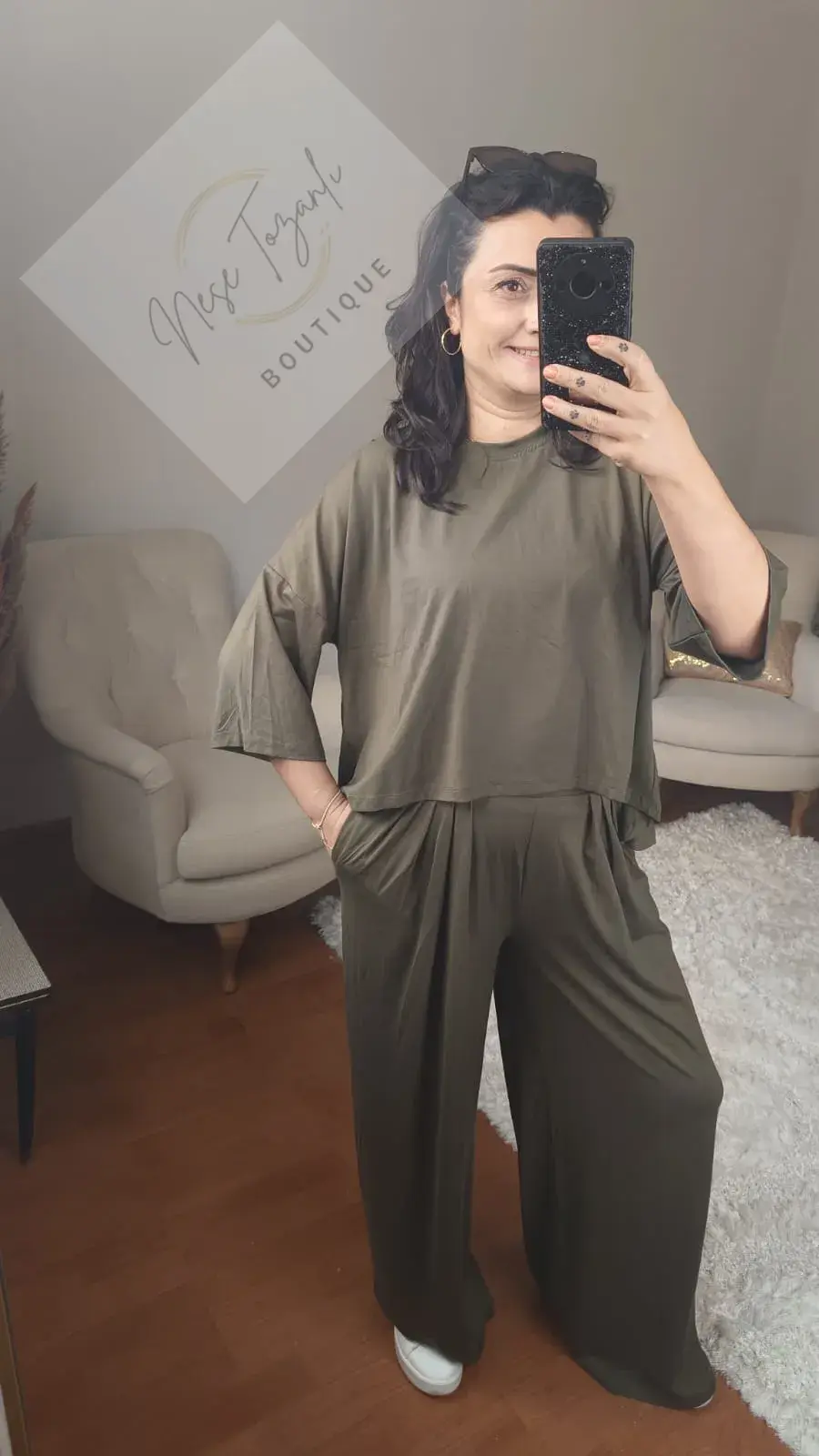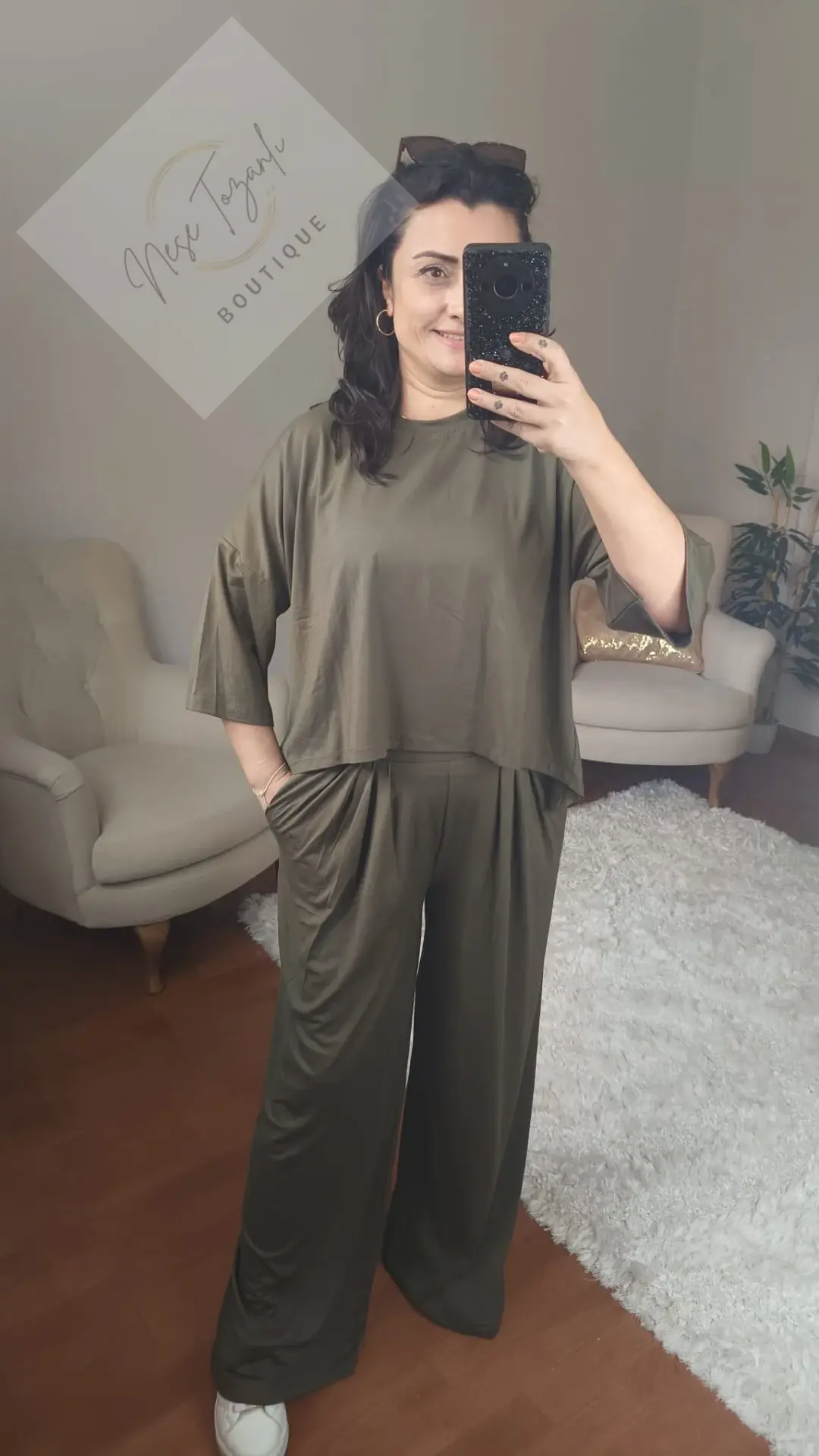 Neşe Tozanlı Boutique, konforu zarafetle yeniden yorumluyor. Zamansız bir renk olan haki yeşilin asil duruşu, bu takımda modern bir tasarımla buluştu. Bu parça, "stil ve konforu tek bir potada eritme" felsefemizin kusursuz bir örneğidir.