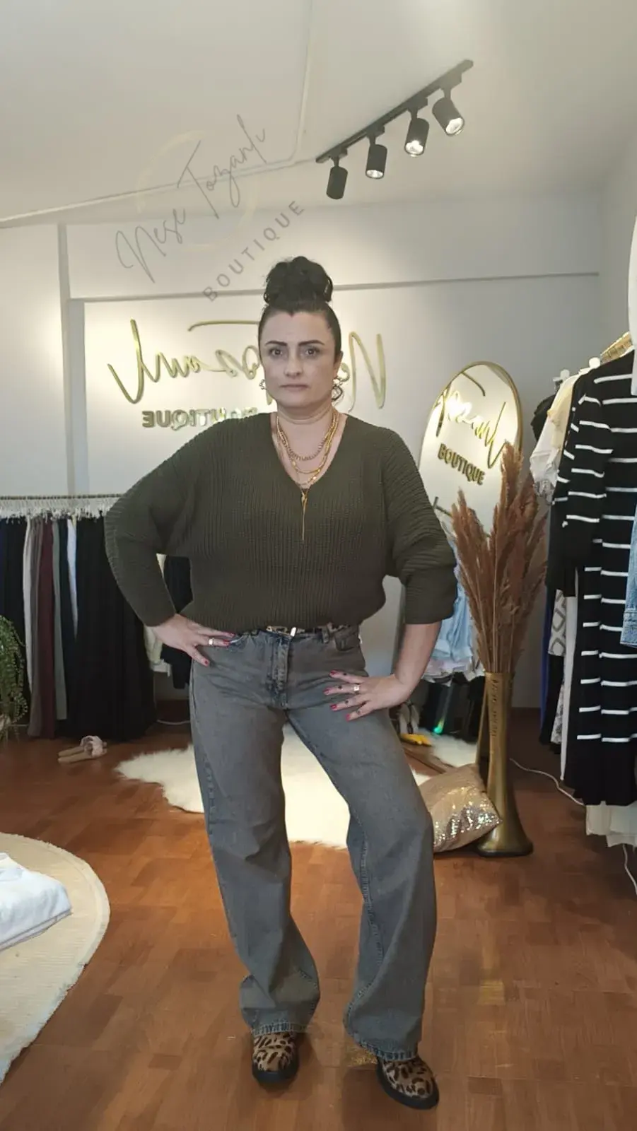Neşe Tozanlı Boutique, denim stilinize seviye atlatıyor. Klasik mavi jeanleri bir kenara bırakın; bu Füme Palazzo Jean, gardırobunuzun yeni favorisi olacak.